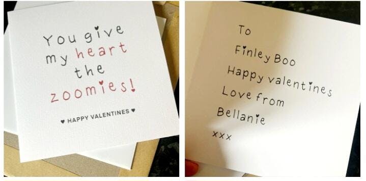 "Your heart gives me the zoomies, Happy Valentine’s,"